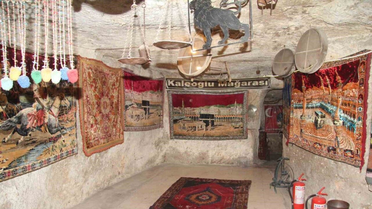 73 yaşındaki Mehmet Kaleoğlu, 200’den fazla eski duvar halısının bulunduğu mağarada yer alan ve en eskisi 150 yıllık olan halıların üzerinde alan hikayeleri merak eden ziyaretçileri de bilgilendiriyor. Eski eşyalara olan merakıyla 50 yılda topladığı yüzlerce ata mirasını sergileyerek mağarasını adeta bir halı müzesine çeviren ve ata kültürüne sahip çıkan Kaleoğlu, duvar halısı kültürünü gelecek nesillere aktarmak istiyor.