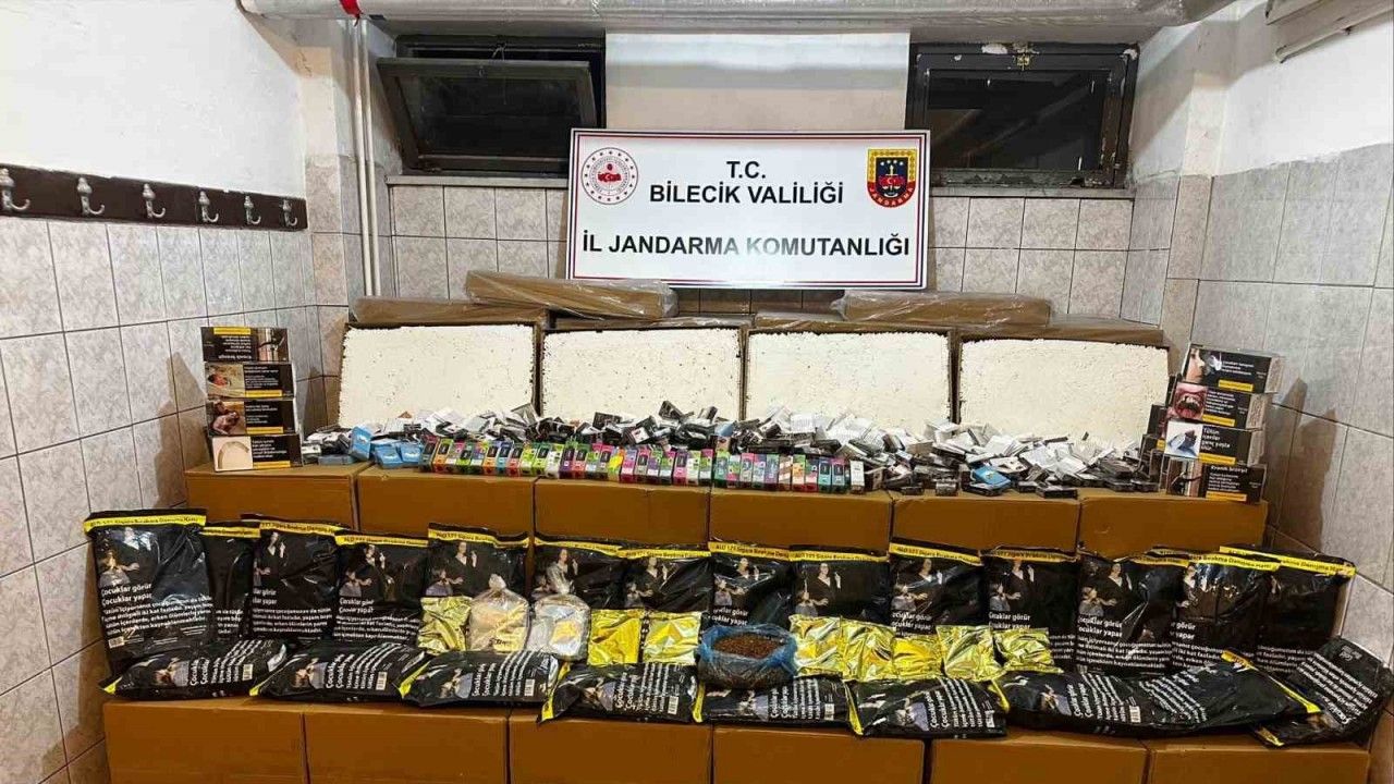 Bilecik İl Jandarma Komutanlığına bağlı KOM Şube Müdürlüğü’nce elektronik sigara, tütün mamulleri ve makaron kaçakçılığıyla mücadeleyle büyük bir operasyona imza attı. Yasa dışı ürünlerin toplum nezdinde ulaşabilirliğinin azaltılması amacıyla TEM Şube, İstihbarat Şube, NSM, Asayiş Komando Bölük Komutanlığı ve Bozüyük İlçe Jandarma Komutanlığı ekiplerince 4 adreste eş zamanlı operasyon gerçekleşti. Ev ve işyerinde yapılan aramalarda 505 bin 126 adet dolu makaron, 64 bin 800 adet boş makaron,157 paket bandrolsuz sigara, 144,5 kilogram tütün, 70 adet 30 ml elektronik sigara likiti, 5 kilogram nargile tütünü, 17 bin 200 adet kilitli poşet ele geçirildi. Operasyonlarda Neşet B. ve Ahmet D. isimli şahısların gözaltına alındığı bildirildi.