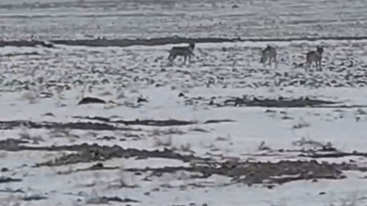 Soğuk hava şartlarının etkisini artırmasıyla birlikte dağlık alanlarda yiyecek bulmakta zorlanan kurtlar, Iğdır Ovası'na indi.