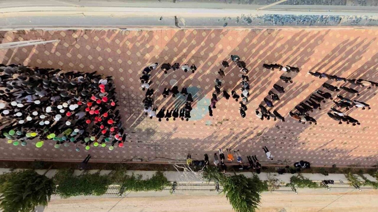 Adıyaman Doğa Koleji öğrencileri, Filistin halkının direnişine destek vermek amacıyla okul bahçesinde bedenleriyle ‘Gazze’ yazarak Filistin bayrağı koreografisi yaptı. Öğrencilerin, Gazze halkına destek amaçlı yaptığı etkinlik büyük ilgi gördü.