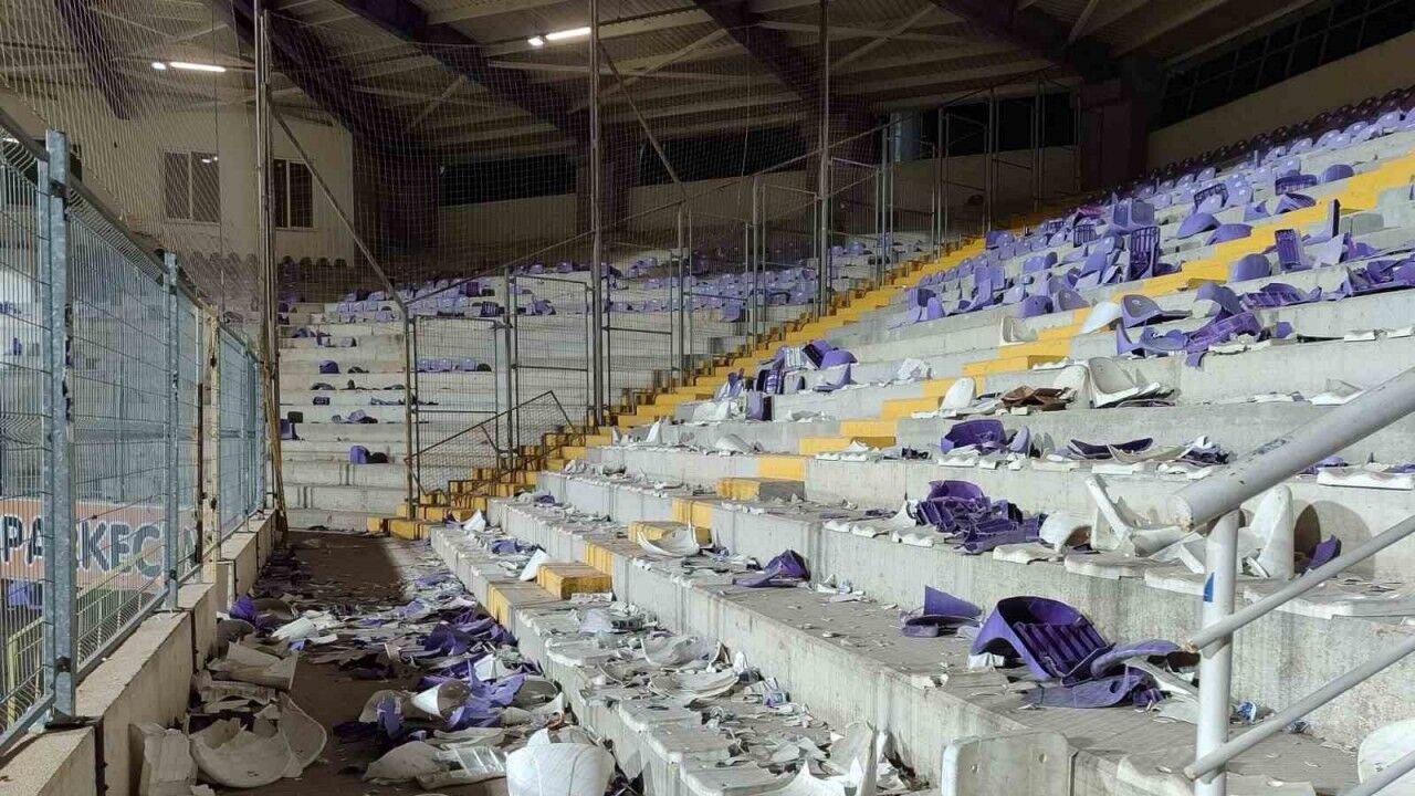 Afyonkarahisar’da oynanan Afyonspor-Eskişehirspor maçı sonrası yaşanan tribün olaylarında 2 bine yakın koltuk yerinden sökülerek sahaya atıldı.