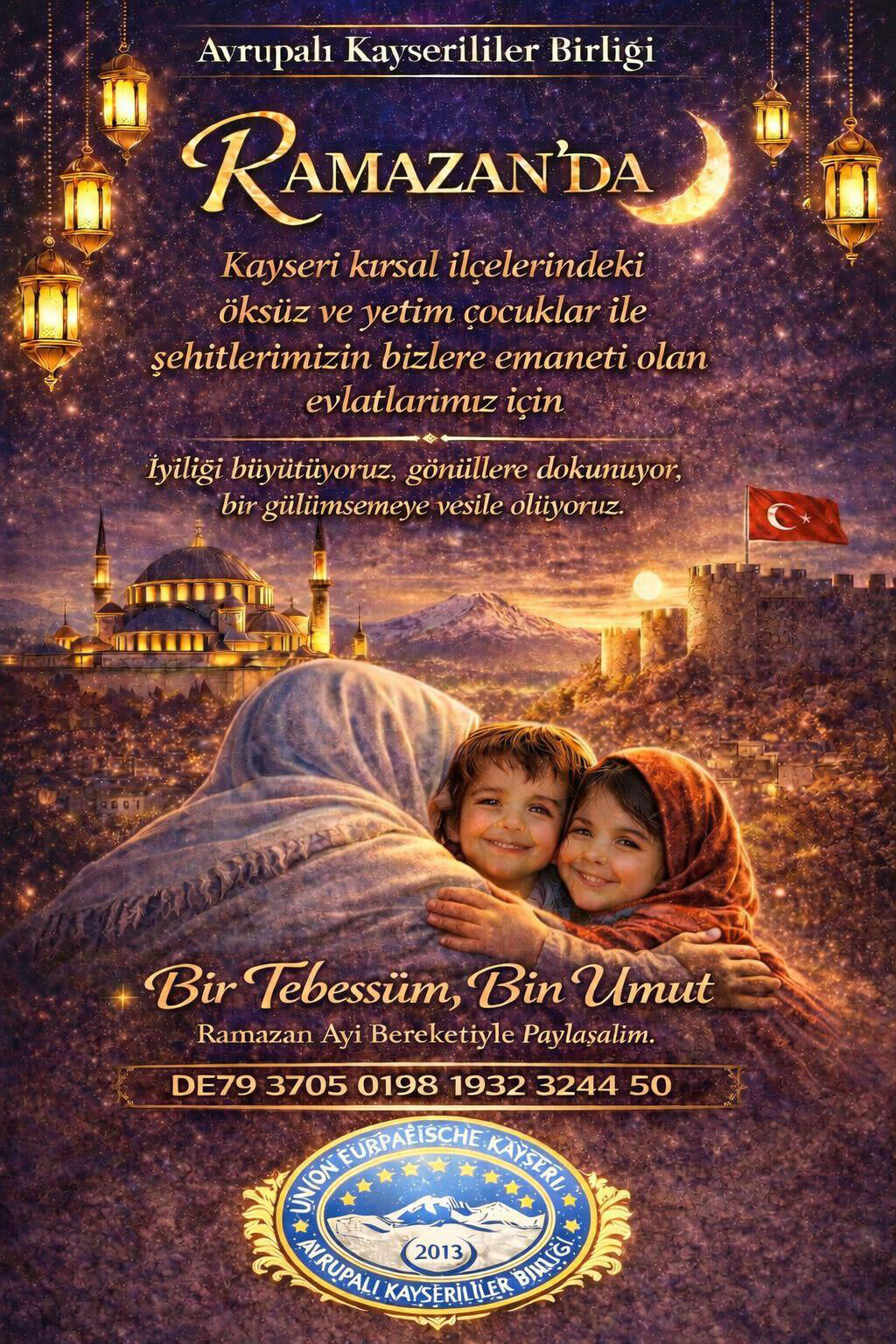 “Kayseri’nin kırsal ilçelerinde yaşayan öksüz ve yetim çocuklarımız ile şehitlerimizin bizlere emaneti olan evlatları için Ramazan ayı içerisinde bir araya geliyoruz. Amacımız sadece yardım ulaştırmak değil, onların yalnız olmadıklarını hissettirmektir. Çünkü biz inanıyoruz ki bir tebessüm bin umuttur.”