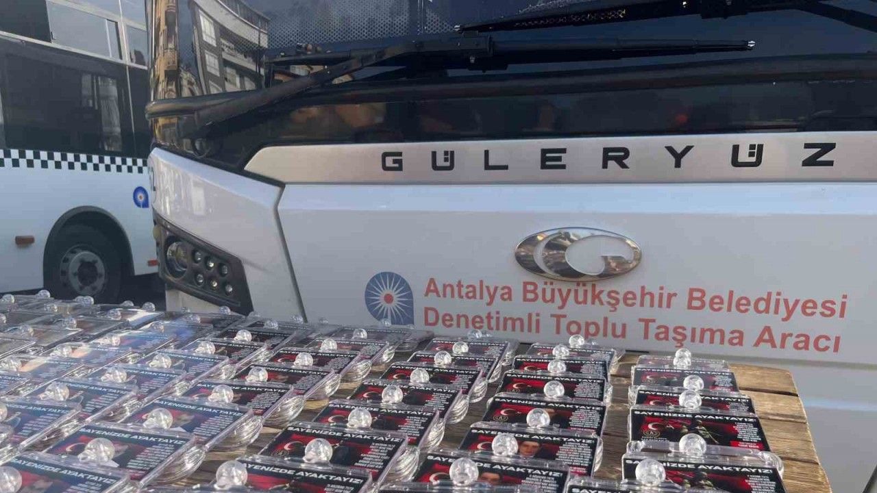 Antalya’nın Alanya ilçesinde, şehit asker ve polislerin fotoğrafları ile bilgilerinin yer aldığı özel kartlar ve görseller otobüs tutamaçlarına basılarak 90 halk otobüsüne takıldı.