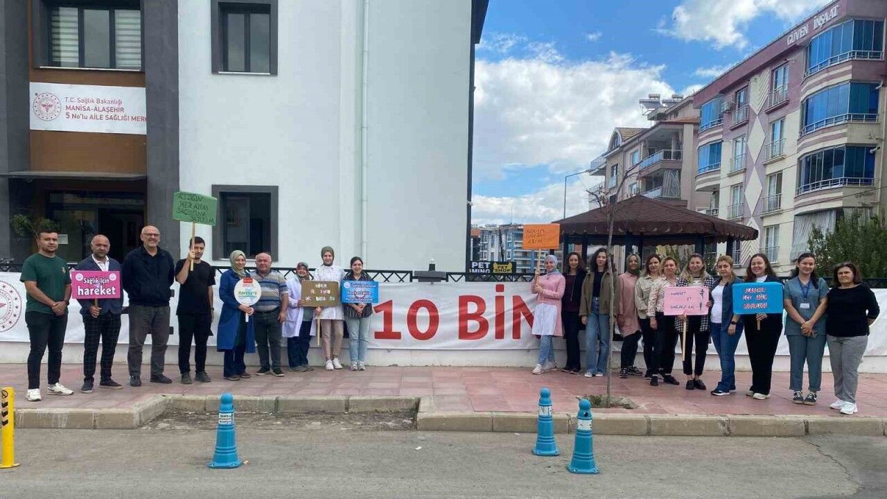 Manisa’nın Alaşehir ilçesinde İlçe Sağlık Müdürlüğü personelleri, "Dünya Yürüyüş Günü" kapsamında farkındalık oluşturmak amacıyla kurum önünde dövizlerle toplanarak etkinlik düzenledi.