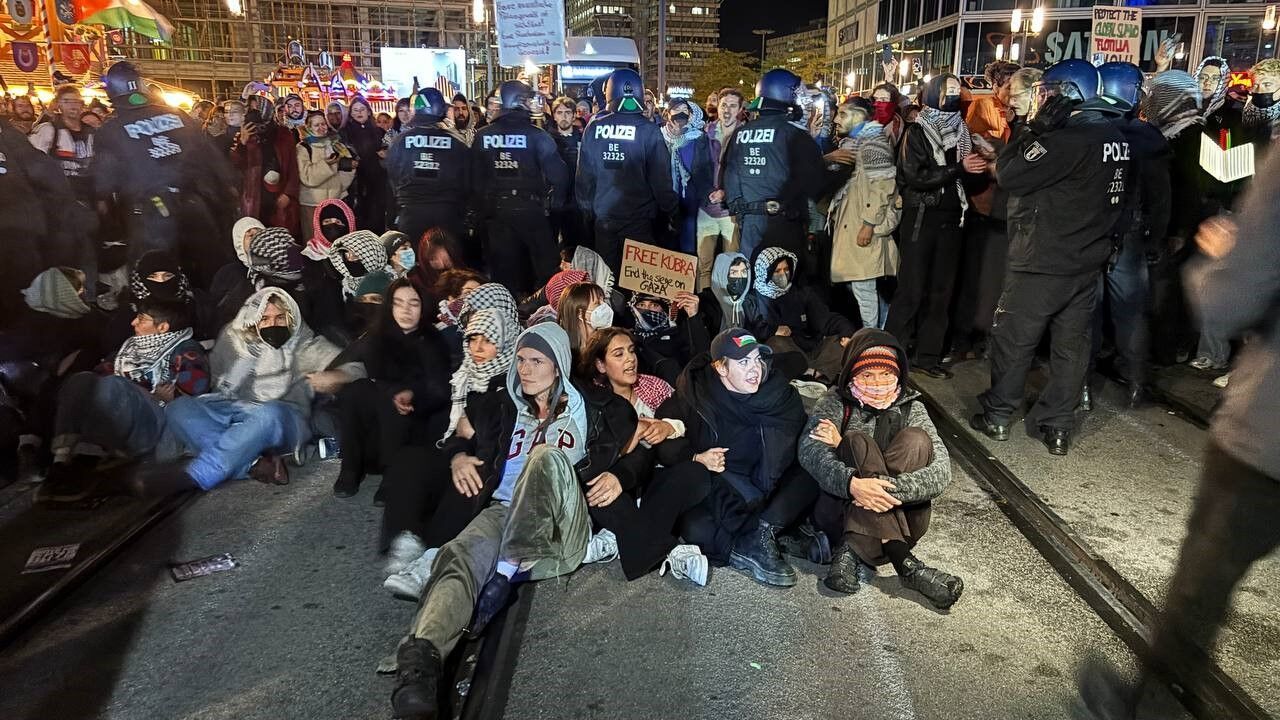 Gösterinin sonuna doğru ise bir grup katılımcı eylem yapılan Alexander meydanından geçen tramvay hattı üzerinde oturma eylemine başladı. Tramvay seferleri dururken Berlin polisi oturma eylemi yapan göstericilere müdahale etti. Polisin oturma eylemi yapanlara sert müdahalede bulunması diğer göstericilerin tepkisine neden oldu. Polis ile göstericiler arasında karşılıklı fiziki müdahaleye varan gerilimler yaşandı. Polis oturma eylemi yapanları tek tek gözaltına alırken, diğer göstericilerin de bölgeden uzaklaşması için yine sert müdahalede bulundu.