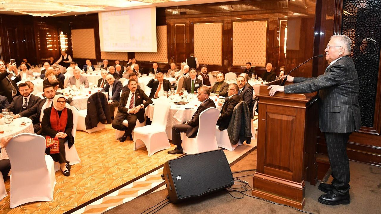 Büyükşehir Belediye Başkanı Memduh Büyükkılıç iftar buluşmasında yaptığı konuşmada, gerçekleştirdikleri hizmetler ile Kayseri’yi iyi bir noktaya taşımaya gayret ettiklerini ifade ederek, “Yatırımdan yatırıma, hizmetten hizmete koşuyoruz. 30 Büyükşehir içerisinde yatırıma en çok pay ayıran Büyükşehir olarak, vaatlerini en çok yerine getiren belediye başkanı ve ekibi olarak, sporun ve sporcunun Avrupa Şehri ama bütün bunların yanında da Dünya Spor Başkenti olması için çırpınan, kültür açısından TÜRKSOY’un, Türk kültürünün, Türk devletlerinin başşehri olma yönünde çok değerli bakanlarımızın, milletvekillerimizin, özelde de Kültür ve Turizm Bakanı’mızın inşallah desteklerini umuyoruz, bu gayretleri ile bize de ona layık olmak için çırpınan yaklaşımı ile şehrimizi kültürün başkenti yapmak için çabalayan anlayışımız ile salt bir ticaret ve sanayi şehri olmaktan öte aynı zamanda tarım ve hayvancılık şehri olma yönünde o konuda da şehrimizi iyi bir noktaya taşıyan ve yine Büyükşehirler içerisinde tarıma ve hayvancılığa hibe bağlamında en çok pay ayıran bir Büyükşehir olarak, her zaman bizimle uyumlu çalışan çok değerli valimiz ve ekibiyle birlikte el ele vermek suretiyle bu şehri iyi bir noktaya taşımaya özen gösteriyoruz” dedi.