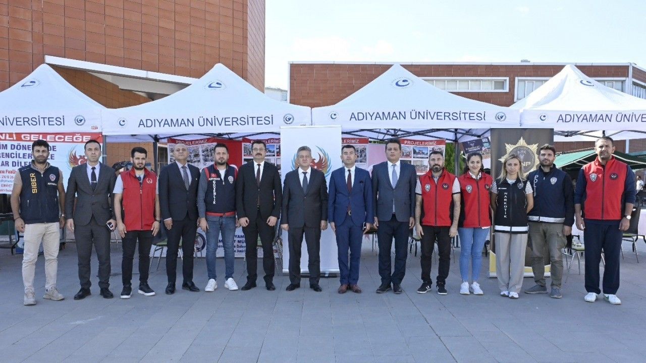 Adıyaman İl Emniyet Müdürü Arzum Nazman, "El Ele Güvenli Geleceğe" projesi kapsamında Adıyaman Üniversitesinde kurulan bilgilendirme stantlarını ziyaret etti.