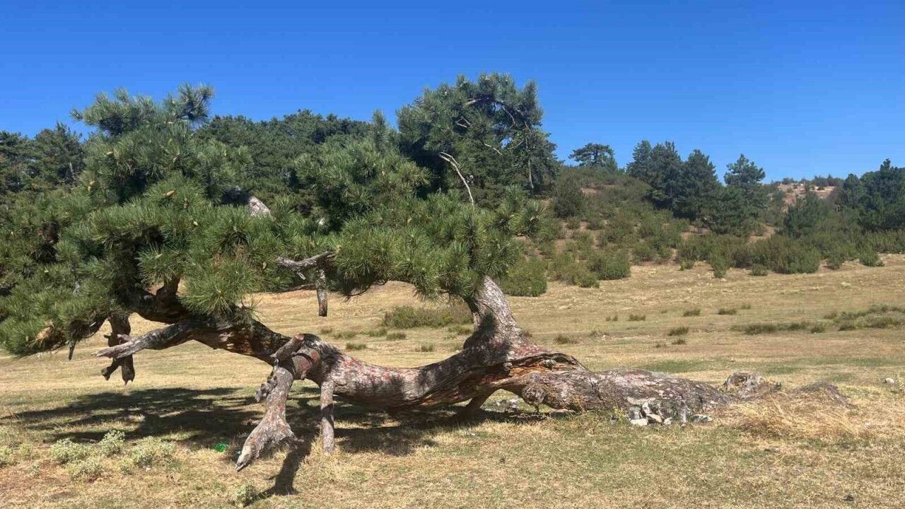 DENİZLİ (İHA) – Buldan Süleymanlı Gölü girişinde bulunan çam ağacı görenleri hayrete düşürüyor. Yıllar önce yıldırım düşmesi neticesinde gövdesinden yaralanan çam ağacı, yere doğru eğilmesine rağmen yaşamını sürdürüyor.