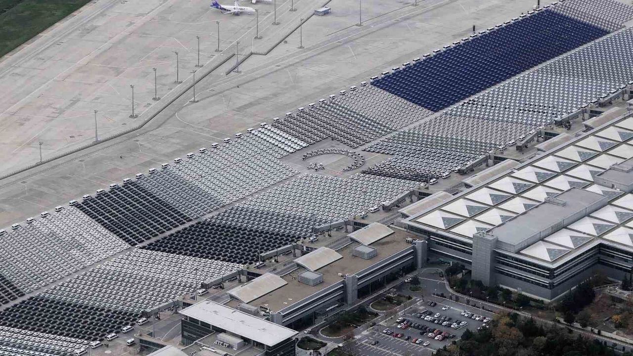 Atatürk Havalimanı apronunda güvenlik birimlerine tahsis edilen binlerce hizmet ve destek aracı, Cumhurbaşkanı Recep Tayyip Erdoğan'ın katılacağı törenle yarın teslim edilecek. Jandarma , Emniyet ve Sahil Güvenlik Teşkilatına verilecek 9 bin 200 yeni araç, Atatürk Havalimanı apronuna sıralandı. Simetrik şekilde aprona dizilen araçlar, dron ile görüntülendi. Binlerce aracın ortasında oluşturulan Türk bayrağı motifi dikkat çekti.