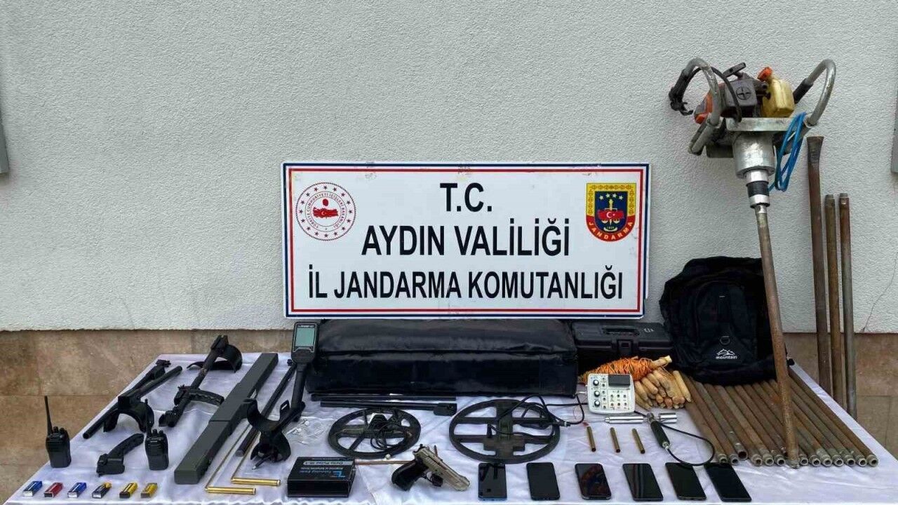Aydın İl Jandarma Komutanlığı KOM Şube Müdürlüğü, Karpuzlu ve Çine İlçe Jandarma Komutanlığının birlikte yürüttüğü takipli faaliyeti kapsamında, "Kültür ve Tabiat Varlıklarını Koruma Kanununa Muhalefet" suçunu işleyen (6) şahsın eş zamanlı olarak evlerinde arama yapıldı. Yapılan aramalarda 1 adet tabanca, 1 adet karot sondaj makinesi, 1 adet zemin etüt maden araştırma cihazı takımı, 1 adet alan tarama cihazı takımı, 19 adet 70 cm.’lik karot sondaj çubuğu, 3 adet alan tarama çubuğu, 2 adet dedektör takımı, 18 adet zemin etüt kazığı, 2 adet el telsizi, 1 adet demir kötürge, 6 adet cep telefonu ve muhtelif kazı aletleri ele geçirildi. Şüpheliler hakkında adli işlemlere başlanıldığı öğrenildi.