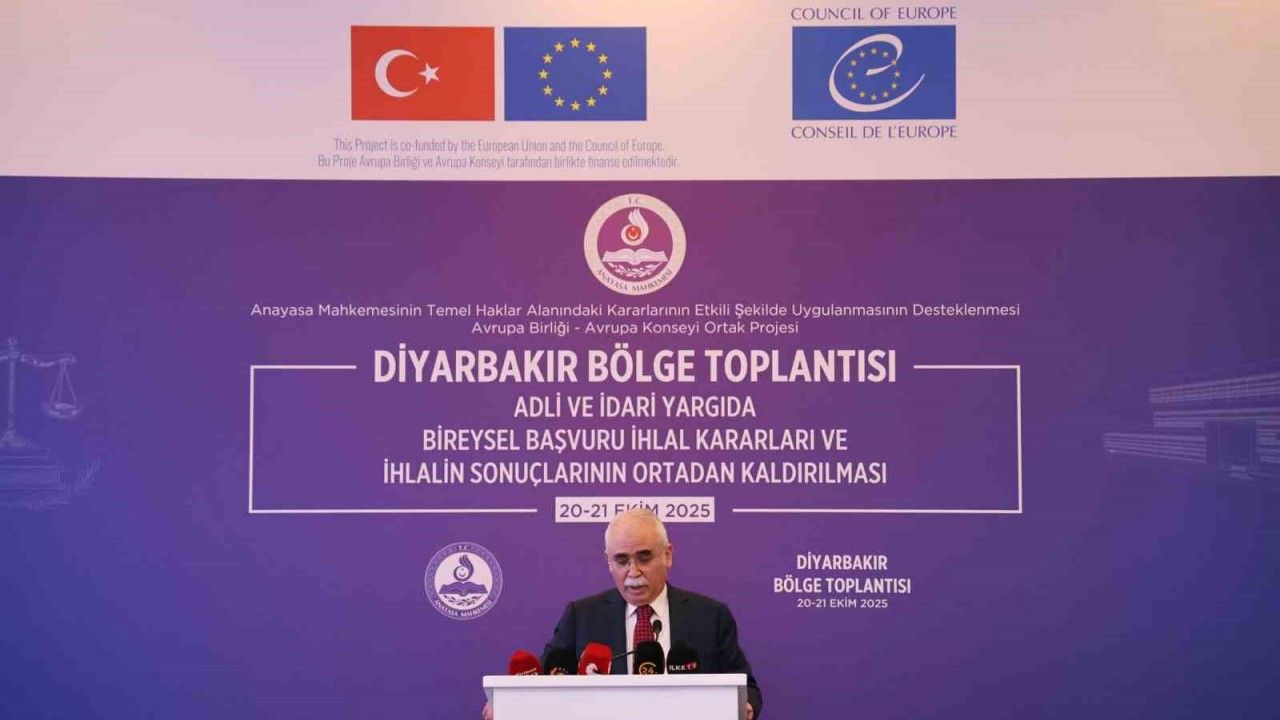 Anayasa Mahkemesi ile Avrupa Birliği-Avrupa Konseyi iş birliğinde yürütülen "Anayasa Mahkemesinin Temel Haklar Alanındaki Kararlarının Etkili Şekilde Uygulanmasının Desteklenmesi Projesi" kapsamında "Adli ve İdari Yargıda Bireysel Başvuru İhlal Kararları ve İhlalin Sonuçlarının Ortadan Kaldırılması" konulu bölge toplantılarının 7’ncisi Diyarbakır’da başladı. Bir otelde düzenlenen toplantıya Anayasa Mahkemesi Başkanı Kadir Özkaya, Yargıtay Başkanı Ömer Kerkez, Yargıtay Cumhuriyet Başsavcısı Muhsin Şentürk, Avrupa Konseyi İnsan Hakları, Adalet ve Hukuki İşbirliği Standartlarının Uygulanması Dairesi Başkanı Lilja Grétarsdttır, Avrupa Konseyi Ankara Program Ofisi Başkanı William Massolın, Diyarbakır Cumhuriyet Başsavcısı Mustafa Çelenk, Diyarbakır Adli Yargı Adalet Komisyonu Başkanı Erhan Çavuşoğlu, Diyarbakır Bölge Adliye Mahkemesi Başkanı Kenan Şenlik, Diyarbakır Bölge Adliye Mahkemesi Cumhuriyet Başsavcısı Ali İrfan yılmaz ve davetliler katıldı.