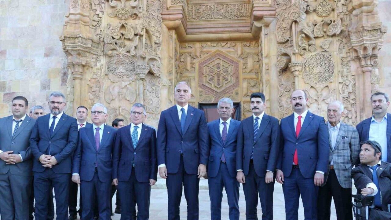 Bir dizi program için Sivas’a gelen Bakan Ersoy, Divriği ilçesini ziyaret etti. UNESCO tarafından Dünya kültür mirasına dahil edilen Türkiye’deki anıtsal ilk eser olan Divriği Ulu Camii ve Darüşşifası’nı ziyaret eden Bakan Ersoy, yetkililerden bilgi aldı. 2015 yılında restorasyonuna başlanan ve 9 yıllık çalışmanın ardından geçtiğimiz yıl ziyarete ve ibadete açılan caminin darüşşifa kısmını da ziyaret eden Ersoy, ‘Nefesle Nefis Dinletisi’ konserini dinledi.