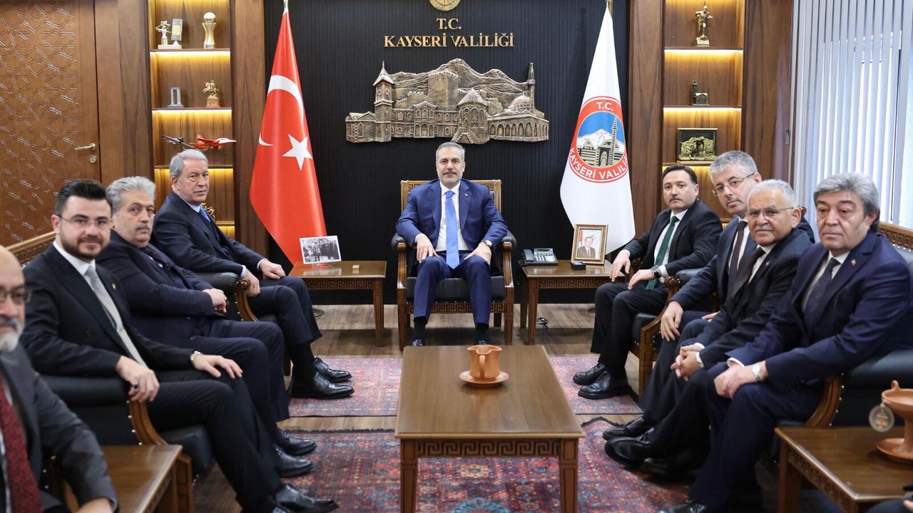 Dışişleri Bakanı Hakan Fidan, 7 Şubat’ta gerçekleştirilmesi beklenen ancak ertelenen programı için bugün Kayseri’ye geldi. Kayseri’ye gelen Dışişleri Bakanı Hakan Fidan, Kayseri Valisi Gökmen Çiçek’i ziyaret etti. Vali Çiçek, Dışişleri Bakanı Hakan Fidan’a teşekkür ederek, yürütülen çalışmalar hakkında bilgi verdi. Bakan Fidan’ın katılımıyla ilerleyen saatlerde AK Parti Genişletilmiş İl Danışma Meclisi Toplantısı gerçekleştirilecek. Daha sonra Bakan Fidan, düzenlenecek iftar programına katılacak.