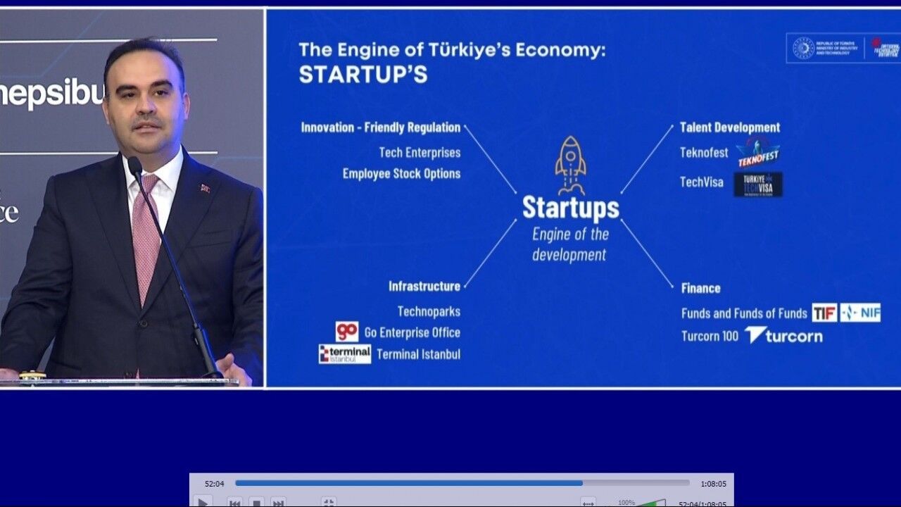 Sanayi ve Teknoloji Bakanı Mehmet Fatih Kacır, "2030 yılına kadar Türkiye’den 100 bin teknoloji girişimi çıkarmayı ve Turcorn’larımızın toplam değerinin 100 milyar dolara ulaşmasını hedefliyoruz" dedi.