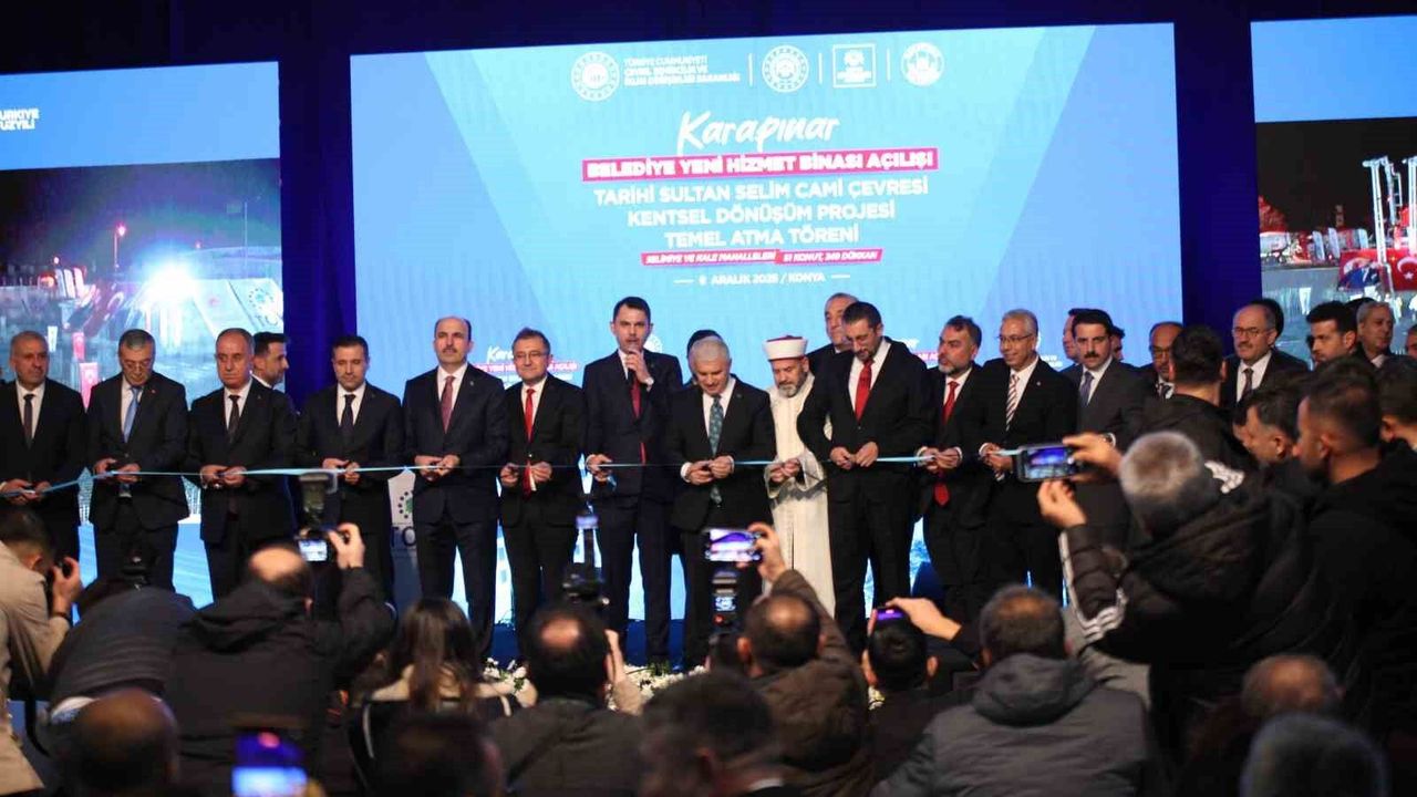 Çeşitli programlara katılmak üzere Konya'ya gelen Çevre, Şehircilik ve İklim Değişikliği Bakanı Murat Kurum, Konya'nın Karapınar ilçesinde Belediye Yeni Hizmet Binası açılışı ve Tarihi Sultan Selim Çevresi Kentsel Dönüşüm Projesi Temel Atma Törenine katıldı. Programda konuşan Bakan Murat Kurum, 'Selçuklu'nun emanetini omuzlarında taşıyan Karapınar'ımız ilimle, sporla, güzelliklerle anılsın. Açılışını yapacağımız, temelini atacağımız bu güzel eserlerle hedefimize bir adım daha yaklaşacağız. Hem şehrimizin ihtiyaçlarına cevap verecek hem de hemşehrilerimize daha kaliteli hizmet sunmanın kapılarını açacağız. Açılışını yapacağımız yeni belediye hizmet binamız; teknolojik altyapısıyla, vatandaşlarımızın işlemlerini kolaylaştıran düzenlemeleriyle, personelimizin daha verimli çalışabileceği alanlarıyla ve şık mimarisiyle Karapınar'ımızın geleceğine yakışır bir eser oldu. Bugün ayrıca, çok önemli bir projenin daha başlangıcına hep birlikte şahitlik edeceğiz. Karapınar'ın kimliğini oluşturan Tarihi Sultan Selim Camii Çevresi Projesi'nin de temel atma törenini gerçekleştireceğiz. İnşallah burada da TOKİ'mizle; 51 konut, 249 dükkan, Kur'an Kursu ve kapalı otoparkımızı hızla yapacak ve 2026 yılında sizlere teslim edeceğiz. Camimizin çevresindeki tüm köhneleşmiş yapıları yıkarak, burayı yeni bir meydan olarak tasarlayacağız; böylece hem camimizi ön plana çıkaracak hem de bölgemizi sosyal ve kültürel açıdan daha da canlandıracağız. Karapınar'ın kalbi bu alan hemşehrilerimizin uğrak mekanı olacak' dedi.