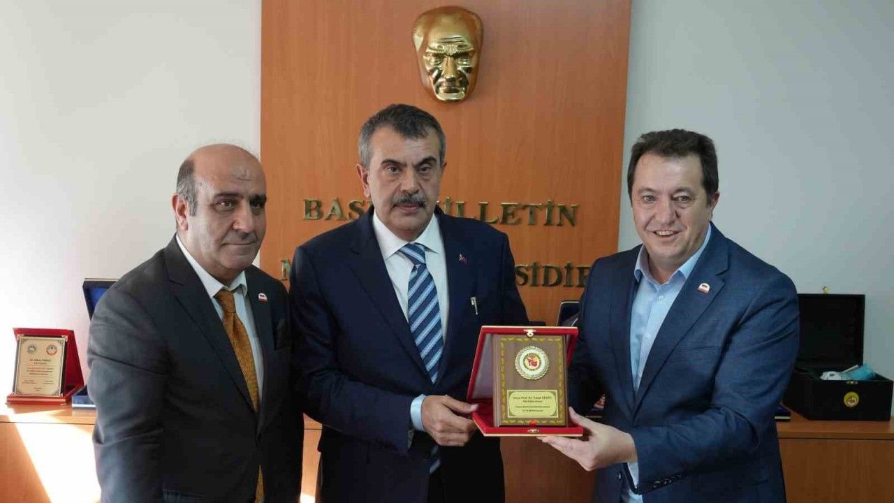 Ziyaret sonunda DAGC Başkanı Türkez ve DGF Başkanı Tarakçıoğlu, Bakan Tekin’e ziyareti anısına bir plaket sundu.