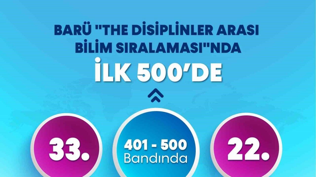 Kurumların disiplinlerarası bilim alanındaki gerçek potansiyelini ortaya koymayı amaçlayan listede BARÜ, 401-500 bandında yer alarak önemli bir başarı kaydetti. Dünyada 94 ülkeden 911 kurumun değerlendirildiği sıralamada BARÜ, Türkiye sıralamasında 93 üniversite arasından 7 üniversiteyle birlikte 33’üncü sırada yer aldı. Devlet üniversiteleri arasında ise 22’nci sırayı 5 üniversiteyle paylaştı.