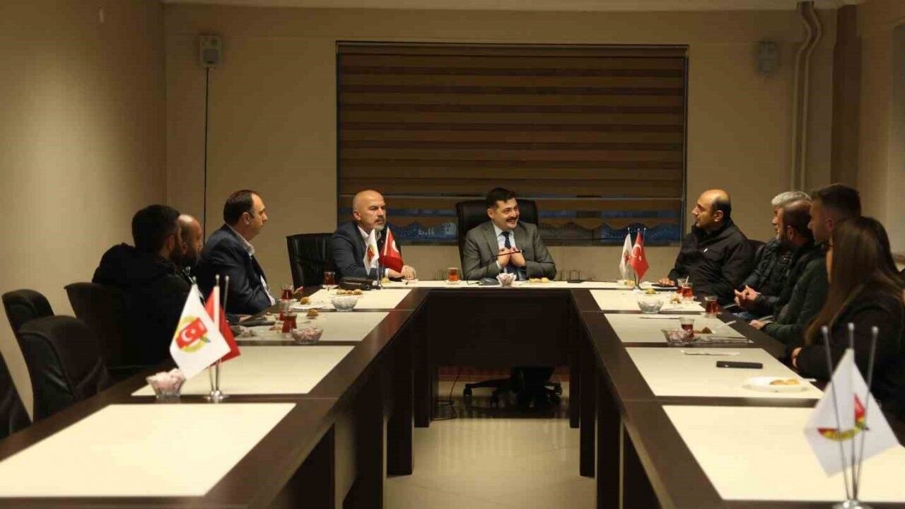 Toplantının sonunda Okutmuş, Akkaya’ya günün anısına hediye takdiminde bulundu.