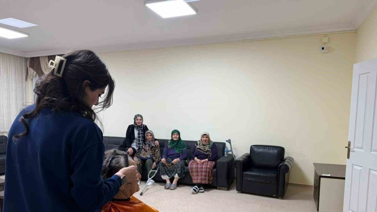 Bayburt Memnune Evsen Huzurevi sakinlerinin kişisel bakımları, gönüllü kuaför tarafından yapıldı.