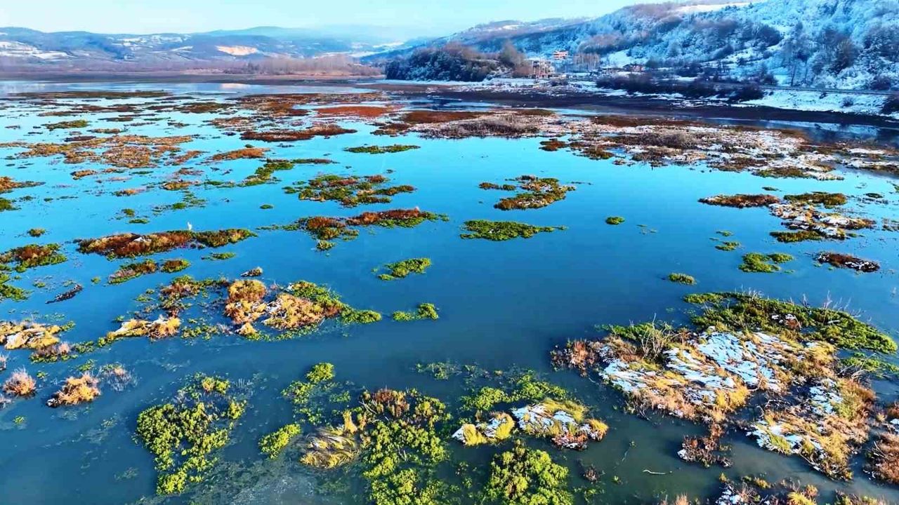 Zaman zaman tamamen donmasıyla da gündeme gelen Ladik Gölü, karla kaplandığında eşsiz bir manzara sunuyor. Beyaz örtünün hâkim olduğu göl ve çevresi, dron ile görüntülendi. Havadan kaydedilen karelerde gölün sakinliği ve doğal güzelliği net şekilde ortaya çıktı.