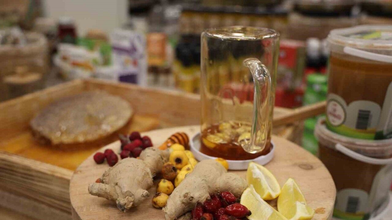 Tıbbi ve Aromatik Bitkiler Teknikeri Şerife Akkuş, "Organik bal ile beraber taze zencefili evde pratik uygulayabileceğimiz şurup kıvamında yapabileceğimiz güzel bir tarif hazırlayacağız. Taze zencefili dilimleyip tane tane küçük dilimler haline getiriyoruz. Kavanozumuzun içerisine belli bir miktar bal koyup içerisine ekliyoruz. Özellikle boğaz enfeksiyonuna, boğaz ağrısına, geçmeyen öksürükte ve bağışıklık sistemini kuvvetlendirmek adına evde 5 yaş sonrası herkesin kullanabileceği çok güzel bir şurup kıvamında ballı karışım. Bal ürünlerine veya zencefile alerjik reaksiyonu olan kişilerin kullanmasını tavsiye etmiyoruz. Onun dışında günlük dozajı bellidir, sabah ve akşam bir tatlı kaşığı şeklinde evden çıkmadan veya okula gitmeden önce alabilirsiniz" dedi.