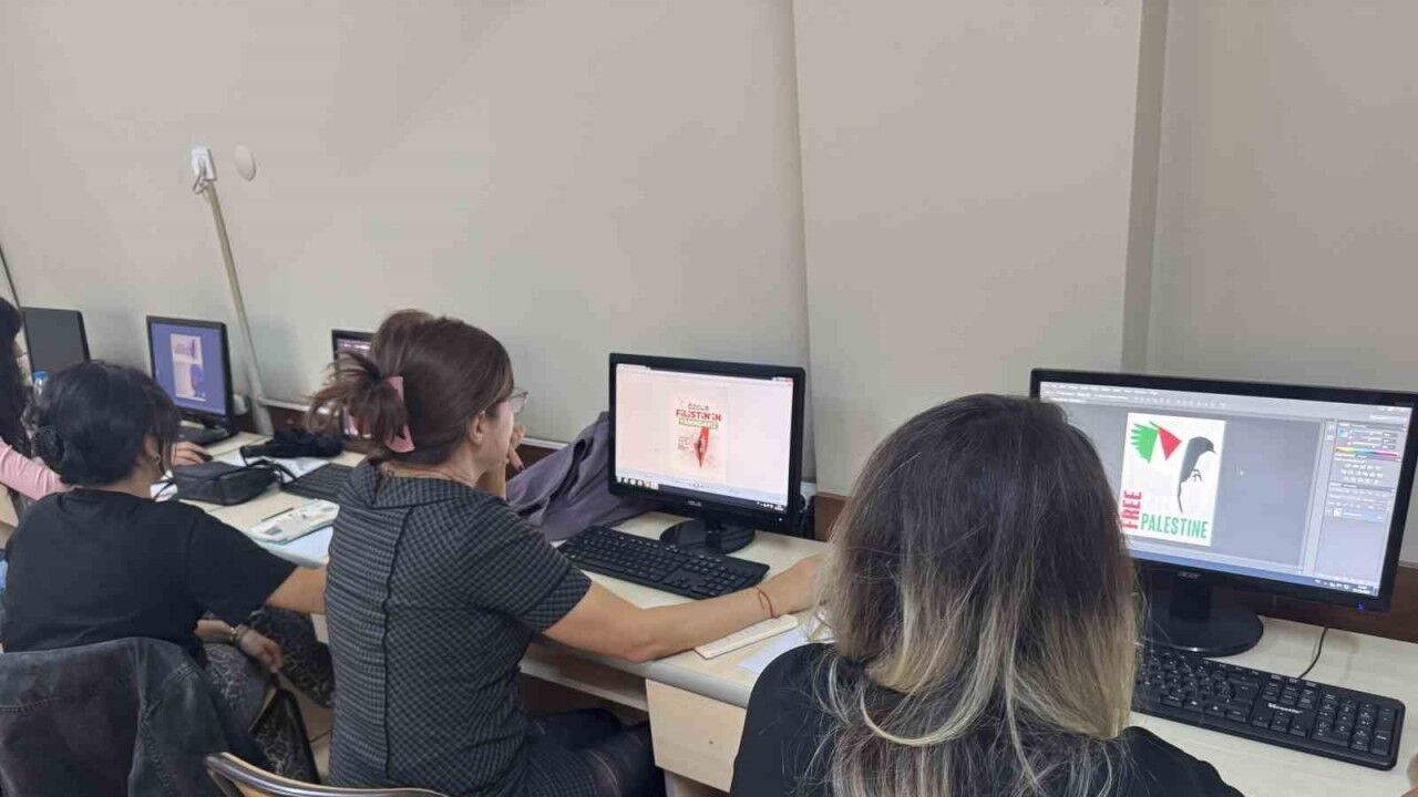 Bornova Halk Eğitimi Merkezi’nde grafik tasarım kursiyerleri, Filistin’de yaşanan insanlık dramına dikkat çekmek amacıyla anlamlı afişler hazırladı. ’Filistin İçin Farkındalık Etkinlikleri’ kapsamında hazırlanan afişlerde barış, adalet ve özgürlük mesajları ön plana çıktı.