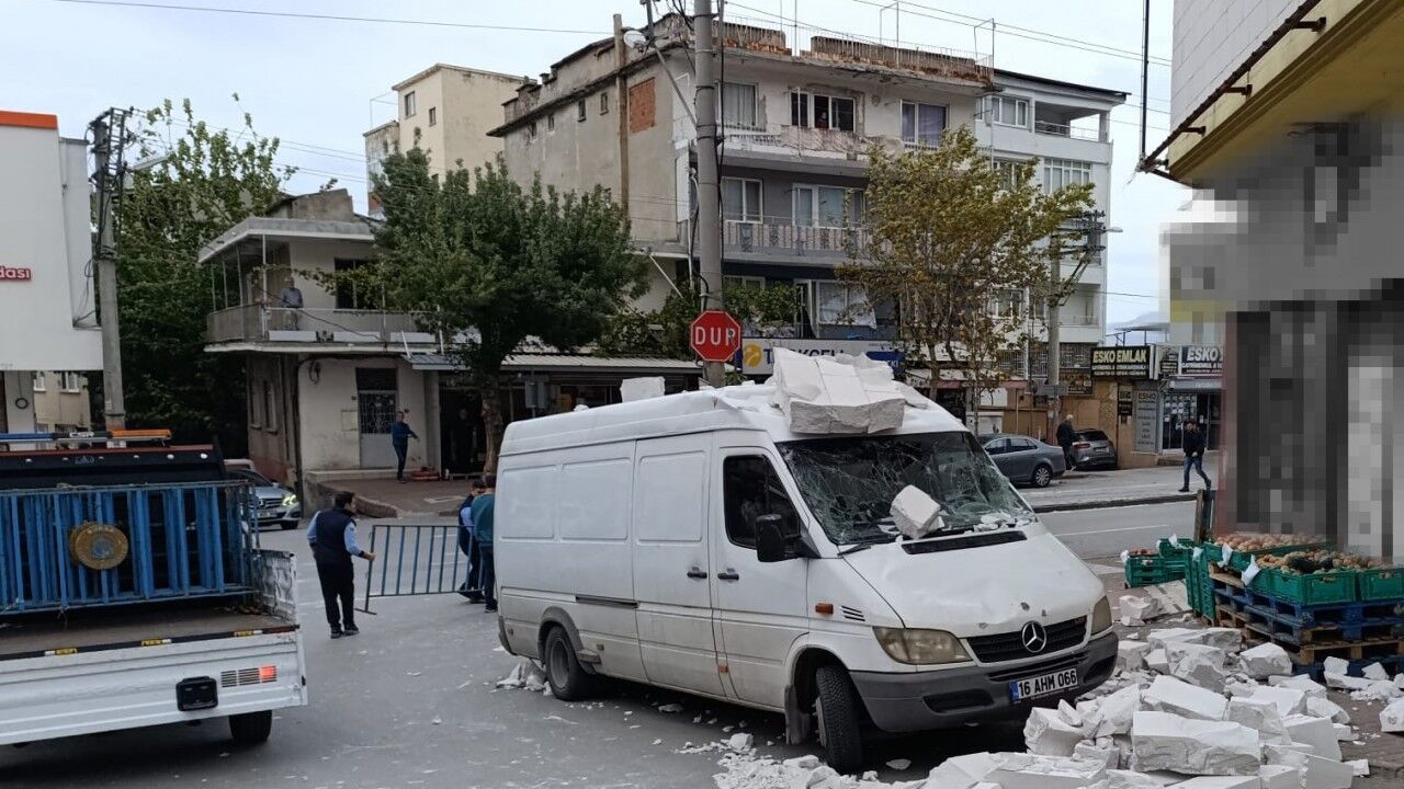 Bursa’da sabah saatlerinden itibaren etkisini gösteren şiddetli lodos kenti olumsuz etkiledi. Saatteki hızı zaman zaman 45 kilometre hıza ulaşan rüzgarlar, ağaçları devirip çöp konteynerlerini yola sürükledi. Yıldırım ilçesi Yeşilyayla Mahallesi Teyyareci Mehmet Ali Caddesi üzerindeki bir inşaattan park halindeki bir minibüsün üzerine alçı tuğlalar düştü. Osmangazi ilçesinde ise Zübeyde Hanım Caddesi üzerinde park halinde olan bir otomobilin üzerine şiddetli lodos nedeniyle ağaç devrildi. O anlar ise bir iş yerinin güvenlik kamerasıyla görüntülendi.