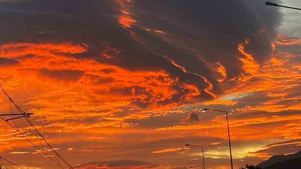 Bursa’da sabah saatlerinde gökyüzünde beliren sıra dışı bulut oluşumu şehrin farklı noktalarından görüntülendi. Gün doğumuyla birlikte turuncu ve kırmızı tonlarına bürünen gökyüzü, adeta kartpostallık manzaralar ortaya çıkardı.