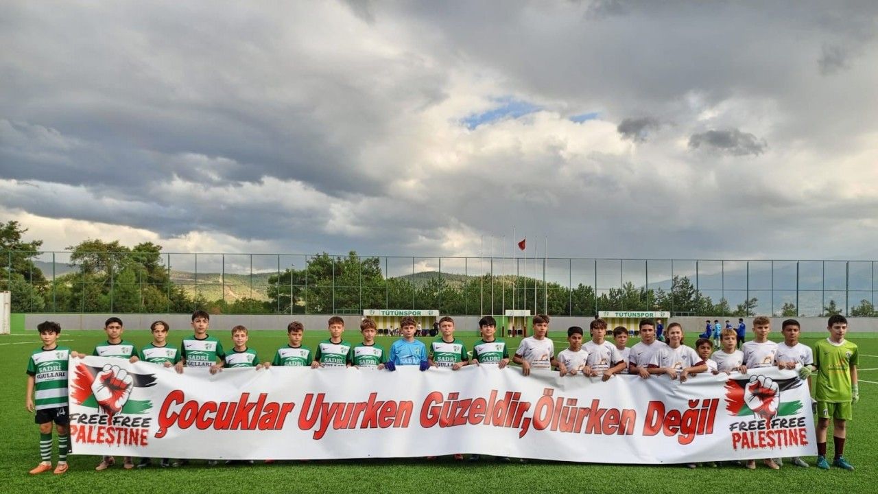 Çoluk çocuk demeden herkesi katleden katil İsrail’e bir tepki de Bursa’daki Tütünspor’da oynayan genç sporculardan geldi .
