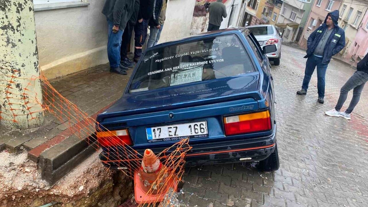 Çanakkale’nin Biga ilçesinde gece boyunca devam eden yağış nedeniyle altyapı çalışması yapılan yol çöktü. 2 otomobil de göçüğün içine düştü.