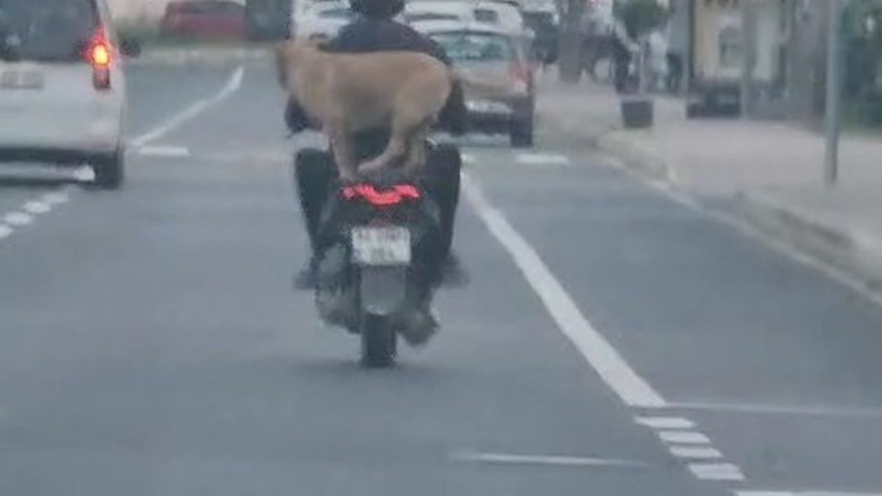 Çanakkale’nin Gelibolu ilçesinde motora artçı olarak binen köpek görenleri hem şaşırttı hem de neşelendirdi. O anları bir başka araçta olan vatandaş cep telefonu kamerasıyla kayda aldı.