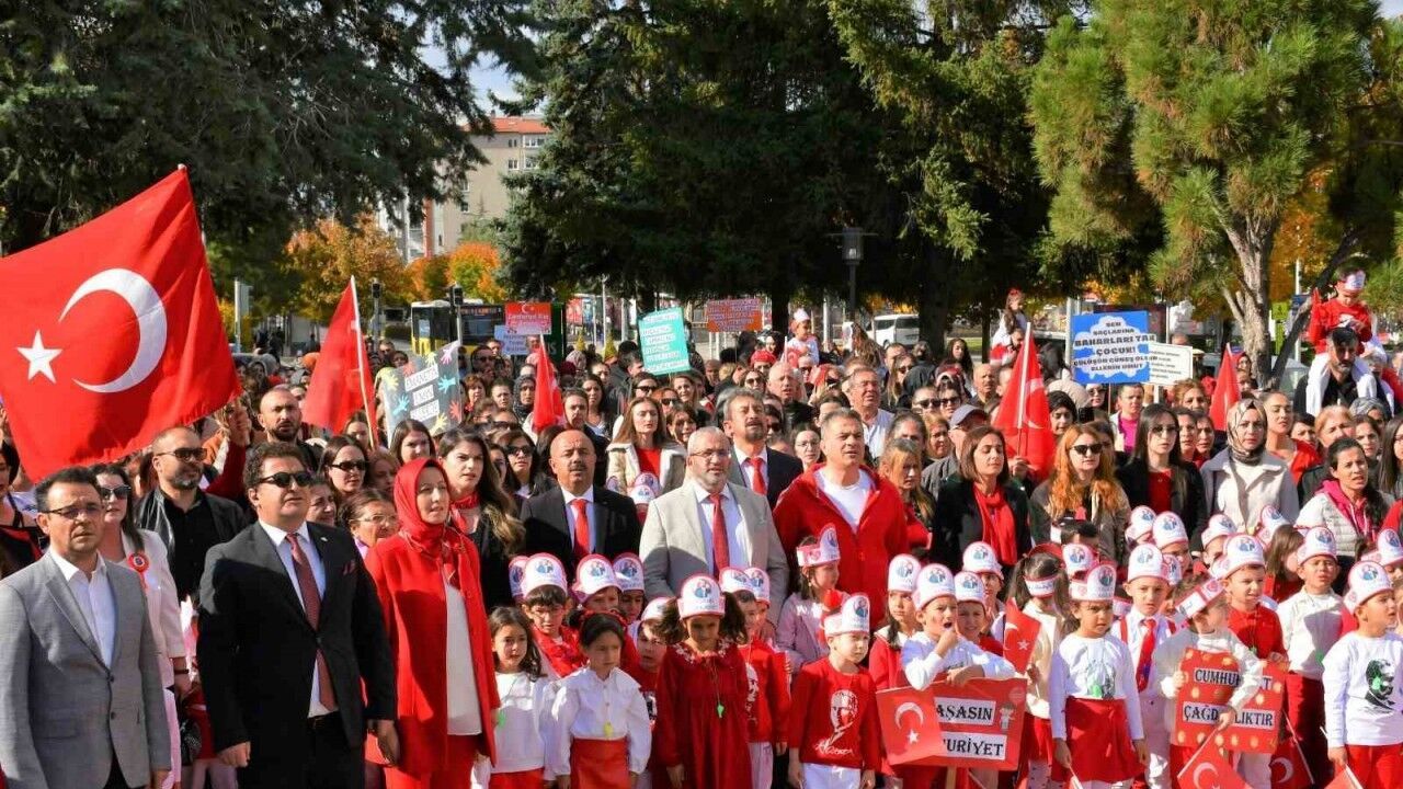 Çorum’da, 29 Ekim Cumhuriyet Bayramı kutlamaları kapsamında yüzlerce anaokulu öğrencisi, Kadeş Meydanı’ndan Atatürk Anıtı’na kortej yürüyüşü gerçekleştirdi.
