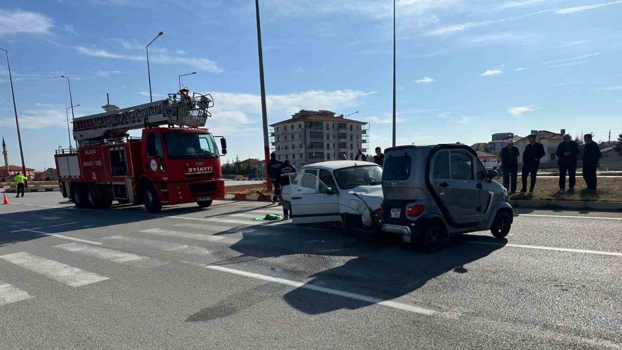 Çorum’un Alaca ilçesinde elektrikli araç ile otomobilin çarpışması neticesinde meydana gelen kazada 3 kişi yaralandı.
