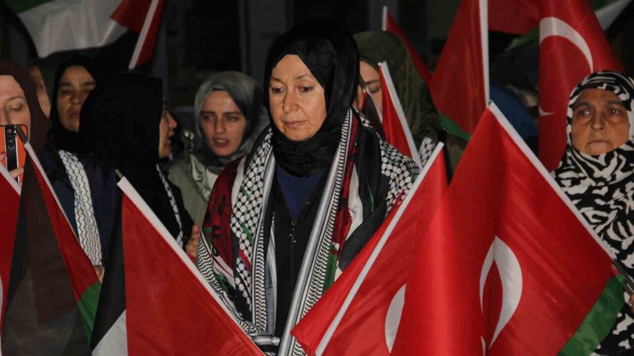 Çorum’da yüzlerce vatandaş, Gazze’ye insani yardım taşıyan Küresel Sumud Filosu’na İsrail’in müdahalesini protesto etmek için Hürriyet Meydanı’nda bir araya geldi. Ellerinde Türk ve Filistin bayrakları taşıyan kalabalık, tekbirler getirerek ve "Kahrolsun İsrail", "Filistin’e Özgürlük" sloganlarıyla tepkilerini dile getirdi. Kur’an-ı Kerim tilavetiyle başlayan programda platform adına basın açıklamaları yapılırken, etkinlik Gazze halkı ve yardım filosunda bulunan gönüllüler için yapılan dua ile sona erdi.