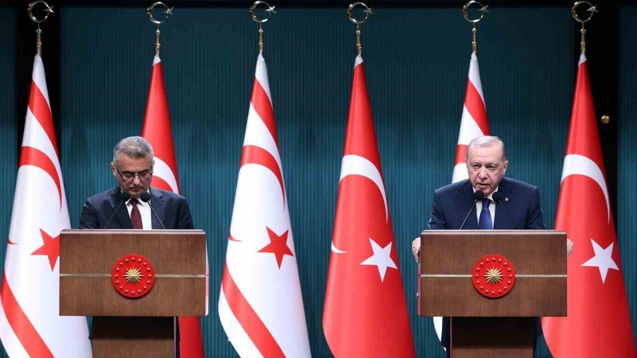 Cumhurbaşkanı Recep Tayyip Erdoğan, Kuzey Kıbrıs Türk Cumhuriyeti (KKTC) Cumhurbaşkanı Tufan Erhürman ile gerçekleştirdikleri baş başa ve heyetler arası görüşmelerin ardından ortak basın toplantısı düzenledi.