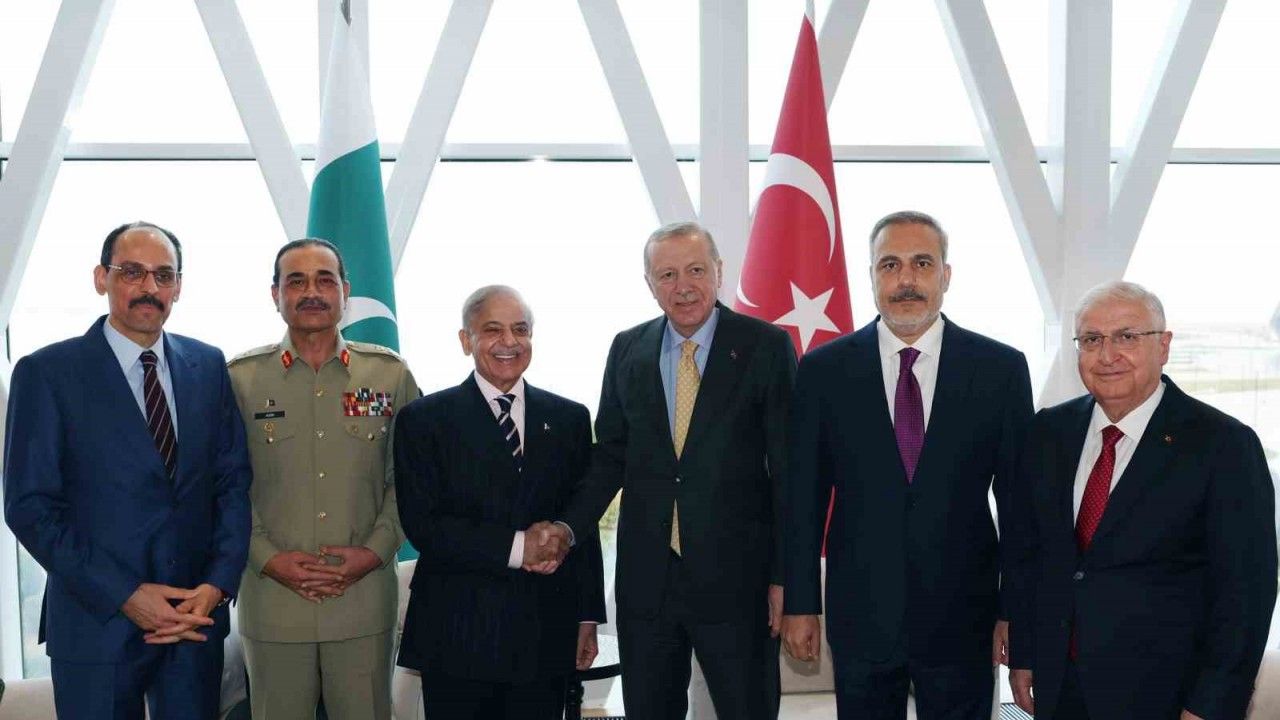 Cumhurbaşkanı Recep Tayyip Erdoğan, Azerbaycan’ın 8 Kasım Zafer Günü Töreni için bulunduğu Bakü’de temaslarına devam ediyor. Cumhurbaşkanı Erdoğan, Pakistan Başbakanı Şahbaz Şerif ile bir araya geldi. Görüşmede Dışişleri Bakanı Hakan Fidan, Milli Savunma Bakanı Yaşar Güler, ve Pakistan Kara Kuvvetleri Komutanı Asım Munir de hazır bulundu.
