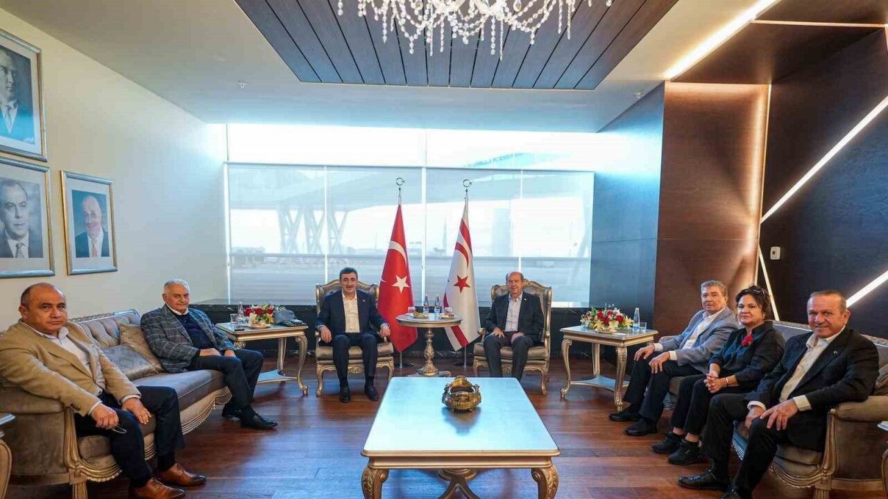 Cumhurbaşkanı Yardımcısı Yılmaz, adadan ayrılmadan önce Ercan Havalimanı’nda KKTC Cumhurbaşkanı Ersin Tatar, KKTC Başbakanı Ünal Üstel ve Türk Devletleri Teşkilatı (TDT) Aksakallar Konseyi Başkanı Binali Yıldırım ile bir araya geldi.