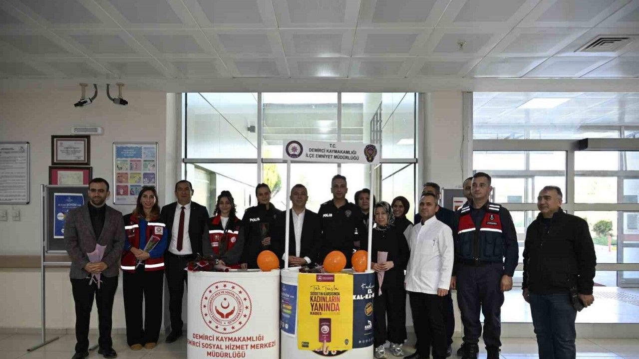 Manisa’nın Demirci ilçesinde 25 Kasım Kadın Yönelik Şiddete Karşı Uluslararası Mücadele günü dolayısıyla kurulan stantta vatandaşlara bilgilendirme broşürleri dağıtıldı.