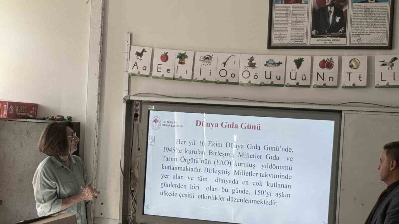 Etkinliğe Tarım ve Orman İl Müdür Yardımcısı Mehmet Halit Gülçer, Gıda ve Yem Şube Müdürü Şahin Üstün ve teknik personel katıldı. 16 Ekim 1945’te kurulan ve Türkiye’nin de 1948 yılında üye olduğu FAO’nun kuruluş tarihi olan 16 Ekim her yıl "Dünya Gıda Günü" olarak kutlanıyor. Şehit Polis Sabri Kün İlkokulu öğrencilerine sunum yapan Gıda ve Yem Şube Müdürlüğü personeli veteriner hekim Türkan Seyyitoğlu sunumda, her gece yaklaşık 820 milyon insanın yatağa aç gittiği, yeterli ve sağlıklı gıdaya ulaşamadığı, bunun yaklaşık her dokuz kişiden biri demek olduğu bilgisini ve açlığın insanlığın bugününü ve geleceğini tehdit ettiği gerçeğini dile getirdi. Seyyitoğlu ayrıca açlığı ve yetersiz beslenmeyi ortadan kaldırmak için öncelikle gıda israfının azaltılması gerektiğini, her yıl dünyada üretilen 4 milyar ton gıdanın üçte birinin çöpe gittiğini, bunun açlık sınırında yaşayan insanları doyurabilecek miktarda olduğunu söyledi.