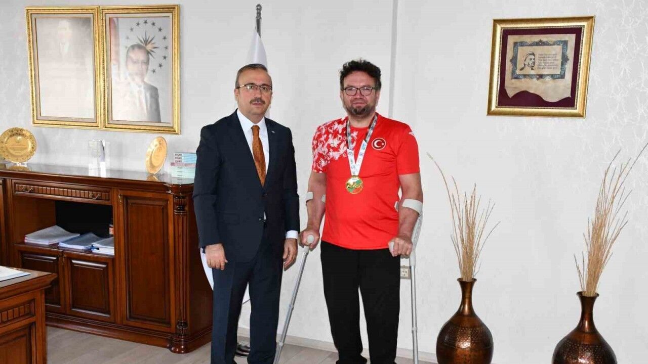 Eskişehir Mustafa Kemal Atatürk Mesleki ve Teknik Anadolu Lisesi’nde memur olarak görev yapan ve ’46. Dünya Bilek Güreşi Şampiyonası’nda dünya şampiyonu olan Murat Cırık, İl Milli Eğitim Müdürü Sinan Aydın’a ziyarette bulundu.