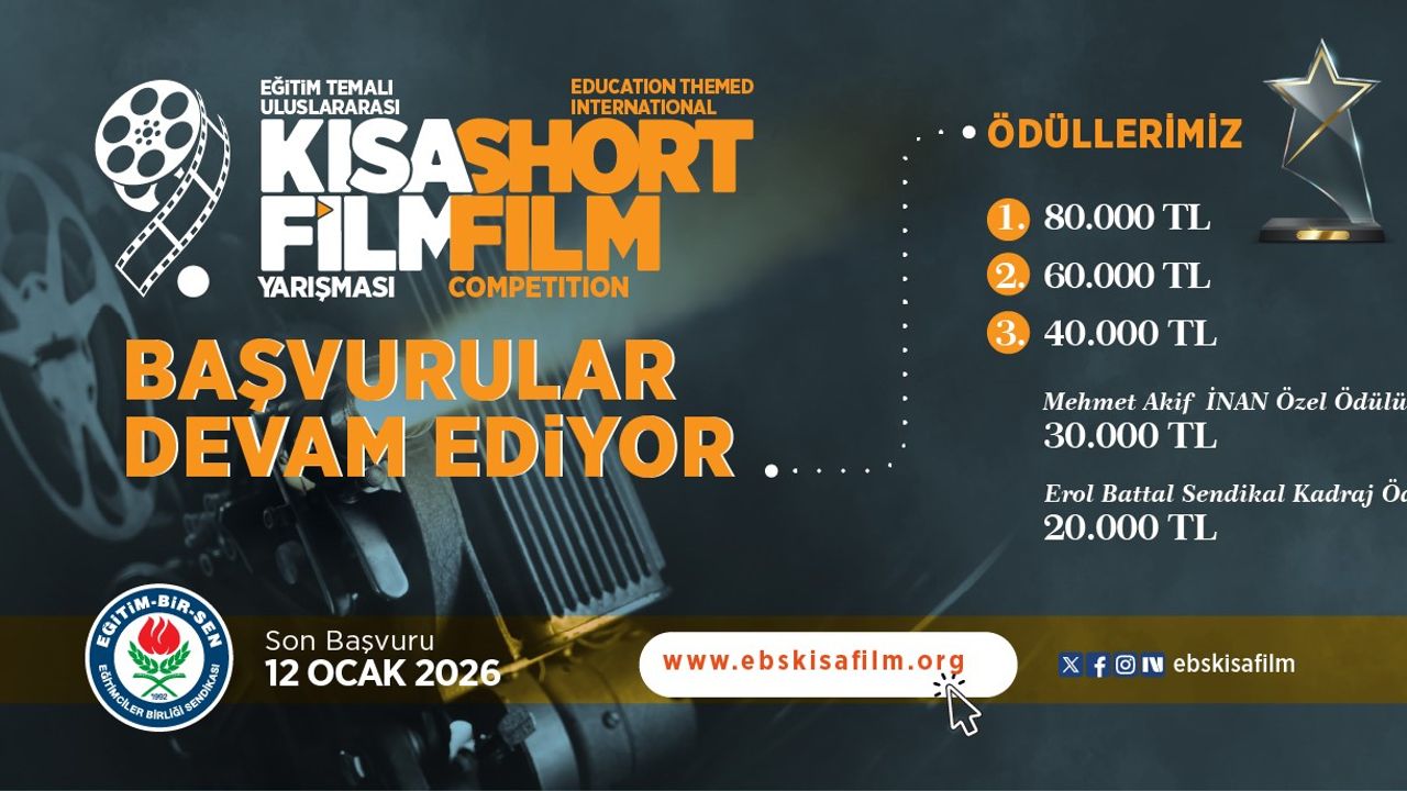Eğitimciler Birliği Sendikası (Eğitim-Bir-Sen) tarafından düzenlenen 'Eğitim' temalı 9. Uluslararası Kısa Film Yarışması'na başvurular 12 Ocak 2026 tarihinde sona erecek.
