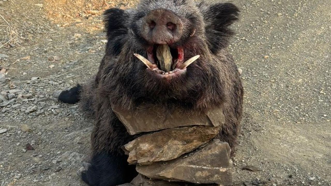 Av turizmi kapsamında yurtdışından gelen yabancı avcılar, Elazığ'da dağlık alanlarda 200 kilo ağırlığında yaban domuzu avladı.