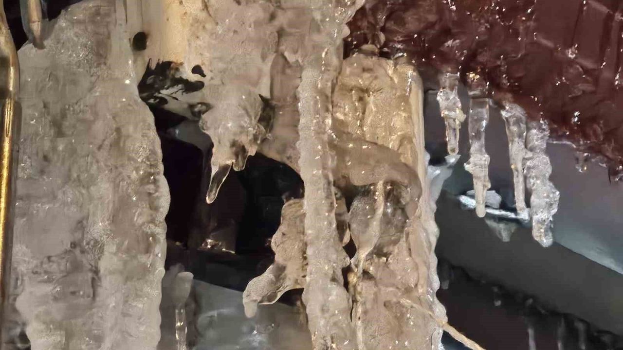 Elazığ'da dondurucu soğuk nedeniyle Karakoçan'da metrelerce buz sarkıtı oluştu.
