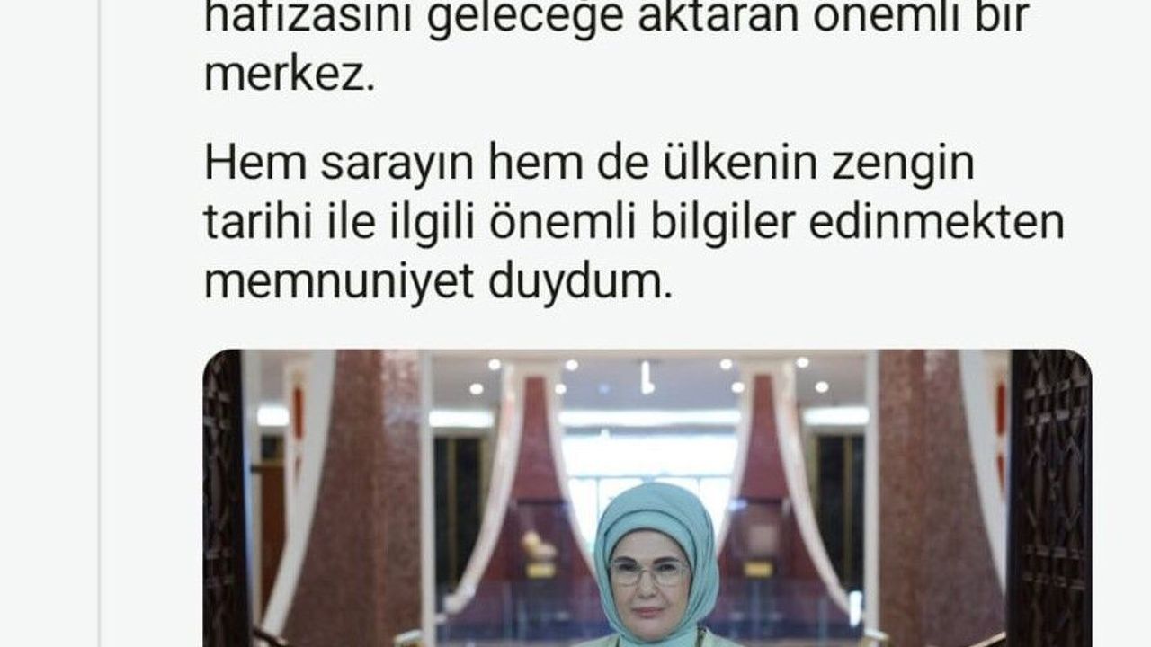 Emine Erdoğan NSosyal hesabından yaptığı paylaşımda, "Kuveyt ziyaretimiz vesilesiyle kültürel mirası, modern müzecilik anlayışıyla buluşturan Al-Salam Sarayı Müzesi’ni ziyaret ettim. Bu müstesna yapı, Kuveyt’in kurumsal hafızasını geleceğe aktaran önemli bir merkez. Hem sarayın hem de ülkenin zengin tarihiyle ilgili önemli bilgiler edinmekten memnuniyet duydum" ifadelerine yer verdi.
