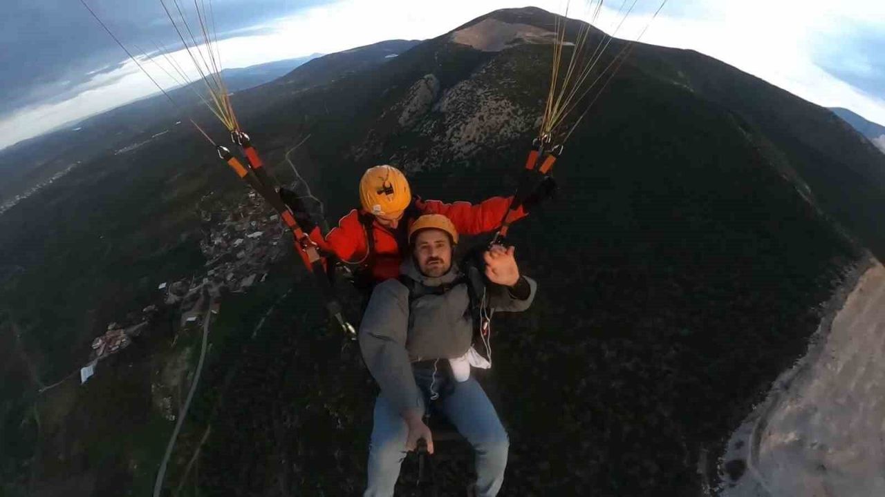 Soma ilçesinde 3 Aralık Dünya Engelliler Günü kapsamında özel çocuklara destek olmak ve farkındalık oluşturmak amacıyla Özel Eğitim Öğretmeni Abdullah Yeşil ile paraşüt eğitmeni Yiğit Kartal, Bubeyler mevkiinde gerçekleştirdikleri tandem yamaç paraşütü uçuşuyla gökyüzünde 'Sevgi varsa engel yoktur' mesajını verdi.