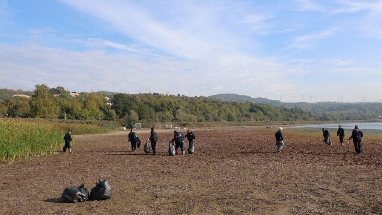 Kartepe’de bulunan Eşme Sahili’nde Sapanca Gölü’nün su seviyesinin düşmesiyle ortaya çıkan atıklar temizlendi.