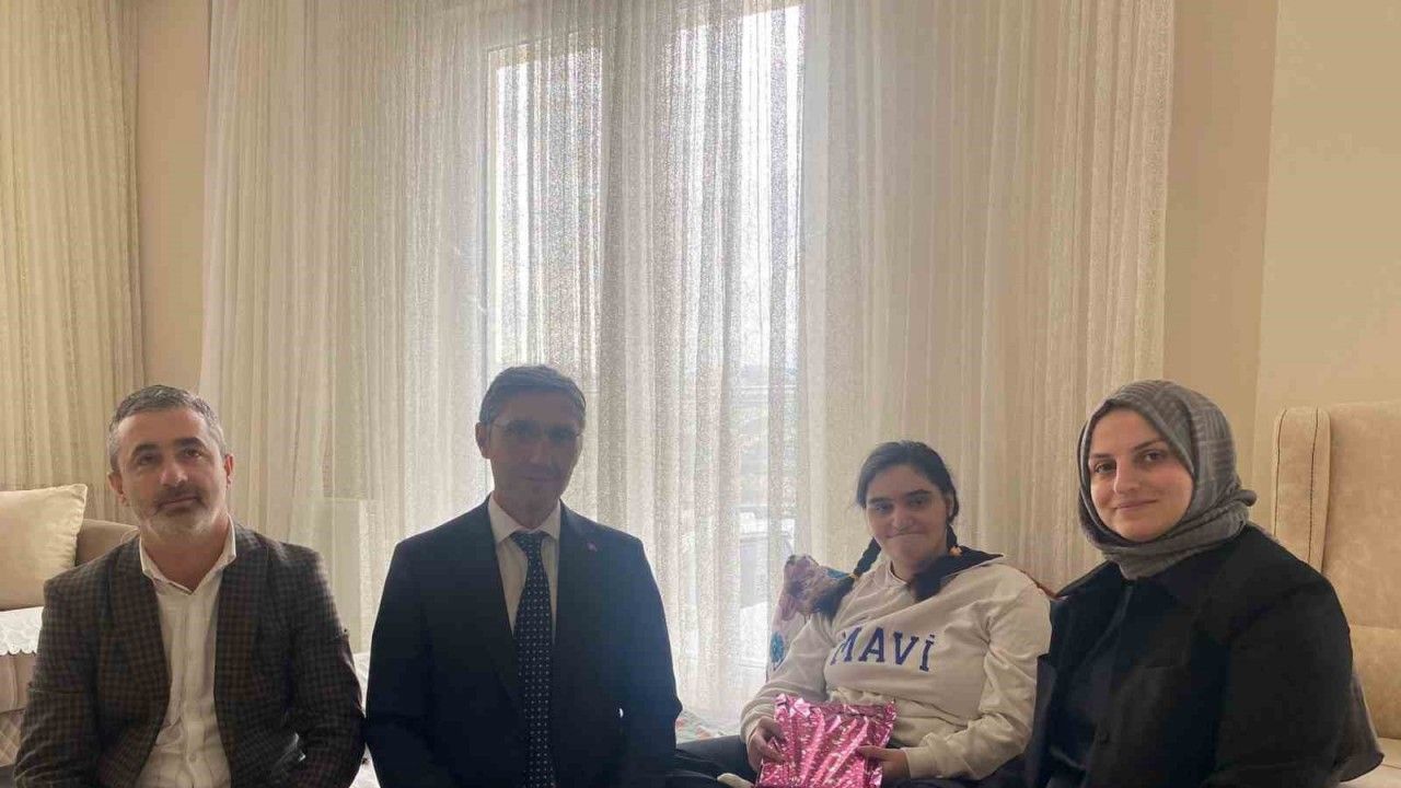 Bayburt İl Millî Eğitim Müdürü Ömer Faruk Kahraman, evde eğitim hizmeti alan 3. kademe öğrencisi Nesibe Karahan’ı evinde ziyaret etti.
