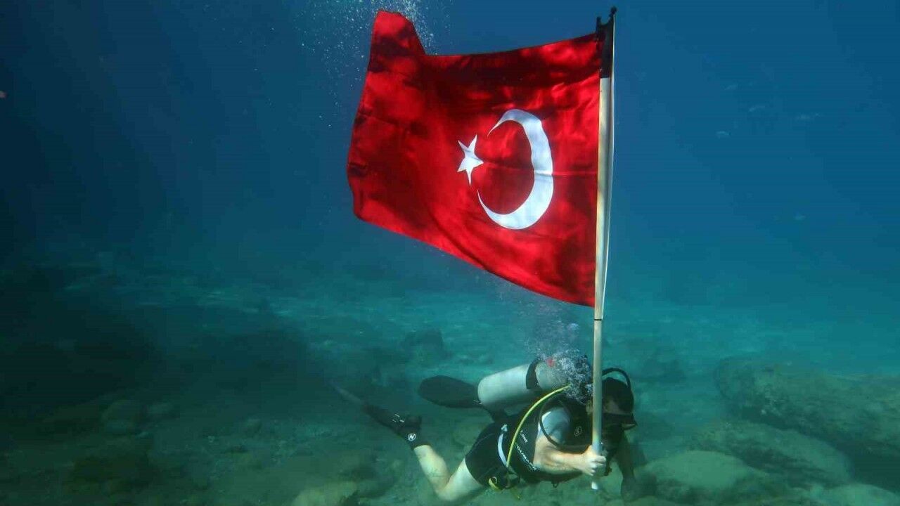 Fethiye Dalış Merkezi’nin organizasyonuyla düzenlenen etkinlik, dalgıçların su altındaki birlikteliğiyle anlam kazandı. Dalış Okulu eğitmeni Önder Diktaş Türk bayrağını dalgalandırırken, dalgıçlar Burkay Kayıran, Berkay Çetin, Elif Cemre Yiğit ve Berat Hünkar Odabaş ise ellerinde Türk bayrakları ile ’geçiş’ yaptı.