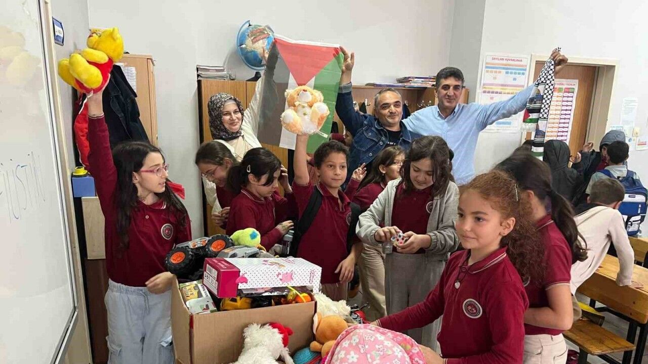 Trabzon’un Ortahisar ilçesinde Ahmet Saka İlkokulu öğrencileri, İsrail zulmü altındaki Gazze’ye destek olmak ve insani drama dikkat çekmek amacıyla düzenledikleri etkinlikle topladıkları oyuncakları Filistinli çocuklara göndermek üzere Trabzon Büyükşehir Belediyesi ekiplerine teslim etti.