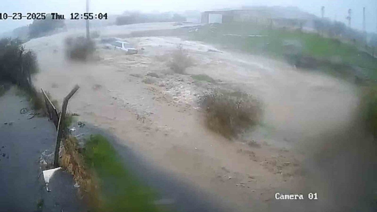 İzmir’in Foça ilçesinde, selde kaybolan 70 yaşındaki Bülent Kaptanoğlu’nun aracının sele kapıldığı anlar güvenlik kameralarına yansıdı.